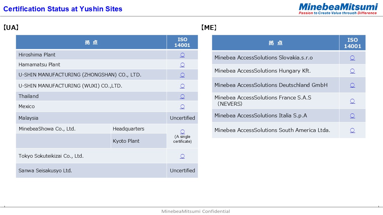 U-Shin has established Compliance and Risk Management Committee in order to improve fairness and transparency of business activities, fulfill social responsibility, and respond accurately to the diversity of management risk. U-Shin has established “U-Shin Code of Conduct” and “U-Shin Action Guideline” in our Compliance Manual in order to recognize correctly and fulfill not only legal compliance, but also corporate social responsibility, and put them into effect across our organization including group companies in Japan and overseas. In addition, we provide various educational programs such as Competition Law Training to enhance employee awareness of the importance of compliance. U-Shin has established an internal reporting system called “Corporate Ethics Hotline System” to enable us to promptly grasp any violation of compliance or suspected violation and take appropriate corrective measures for the purpose of enhancing and reinforcing our compliance system. In addition to our internal consultation service, we have introduced an external consultation service by outside lawyers since this year, through which all employees from domestic group companies including temporary employees are able to inform matters concerning a breach of compliance. We rigorously protect the confidentiality of the informed contents as well as the informant’s personal information, and the informant will not suffer any detrimental treatment.